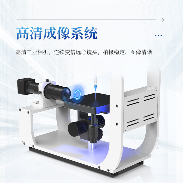 采集系统采用黑白进口CCD相机,拍摄稳定,图像清晰,真实可靠,镜头采用德国工业级远心变焦变倍式进口配置,0.7-4.5倍放大可调3mm微调,成像无畸形失真;